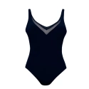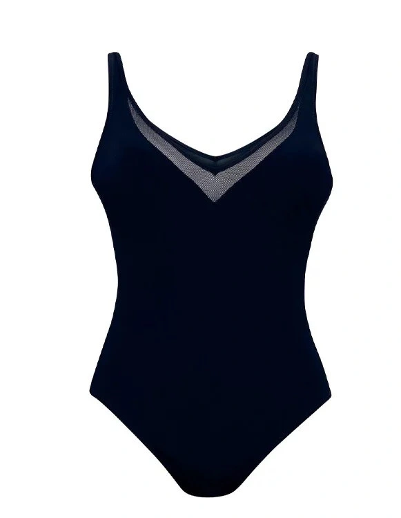 Dámské jednodílné luxusní plavky s posouvacími ramínky. Košíčky podšité, s kosticemi a spodní gumou na komfort při nošení. S okrasnými prvky - síťovinou kolem dekoltu a na zádech, síťovina je podšitá.74% Pol