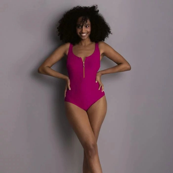 Dámské luxusní jednodílné plavky značky Anita, s posouvacími ramínky. Vepředu rozepínání na zip. Celopodšité. U košíčků podšité gumou pro lepší komfort při nošení.