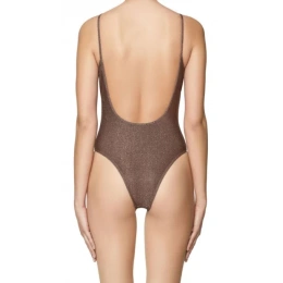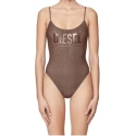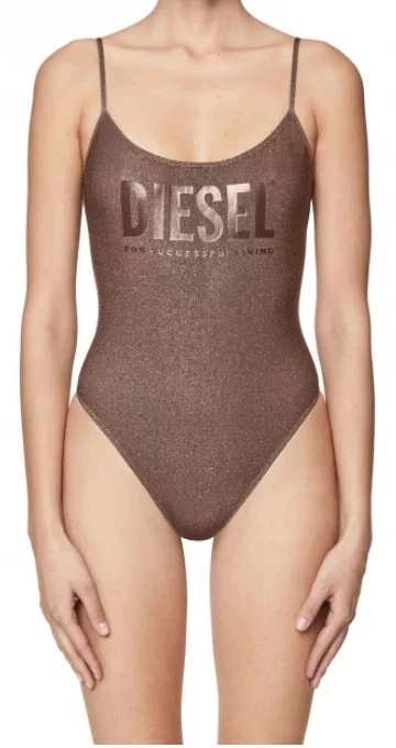 Třpytivé plavky s nízkým výstřihem vzadu a tenkými ramínky. S nápisem Diesel přes hrudník. Materiál: 50 % Polyester, 20 % Elastan-Spandex, 16 % Polyamid-Nylon, 14 % Kovové vlákno