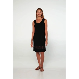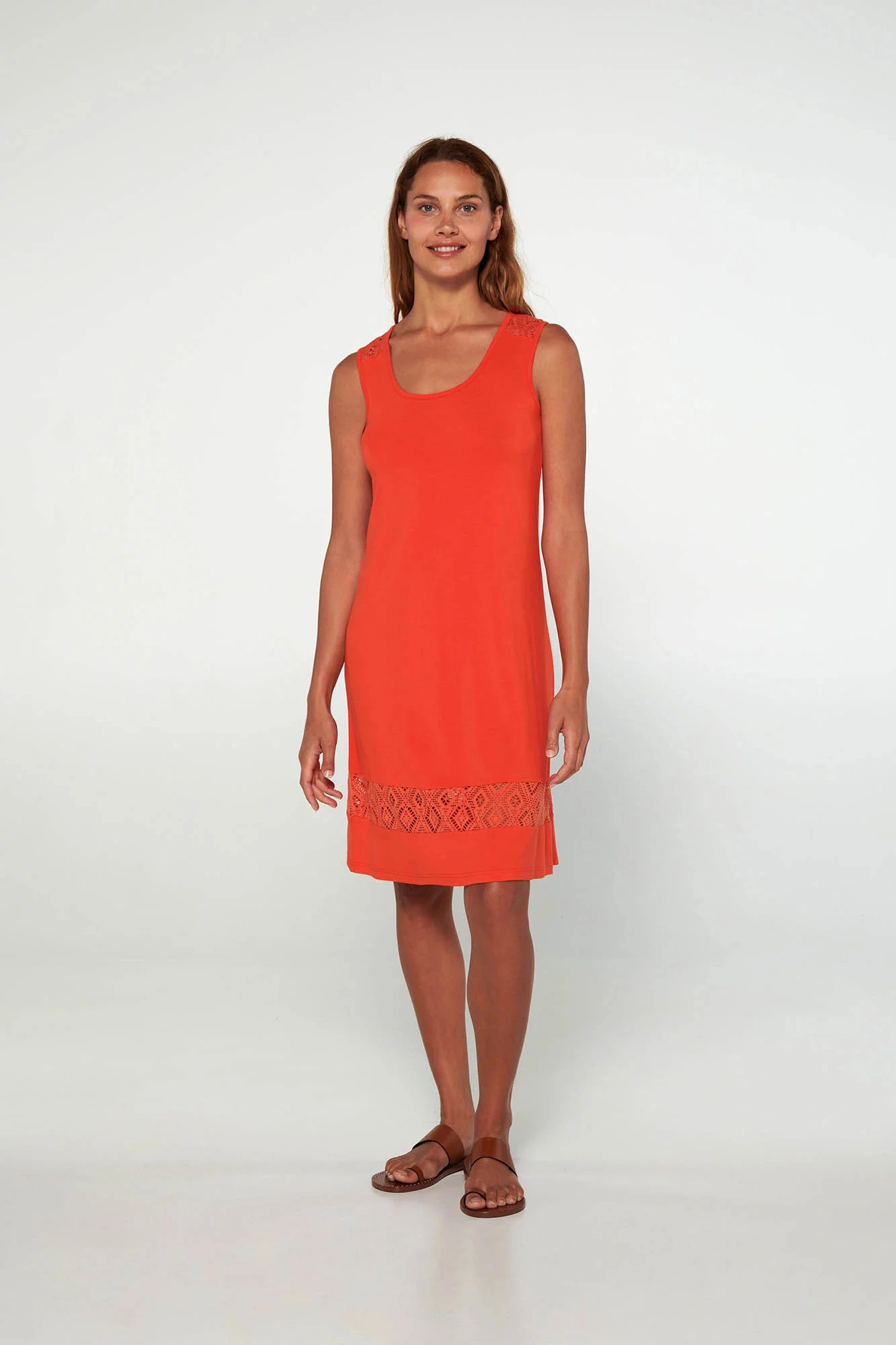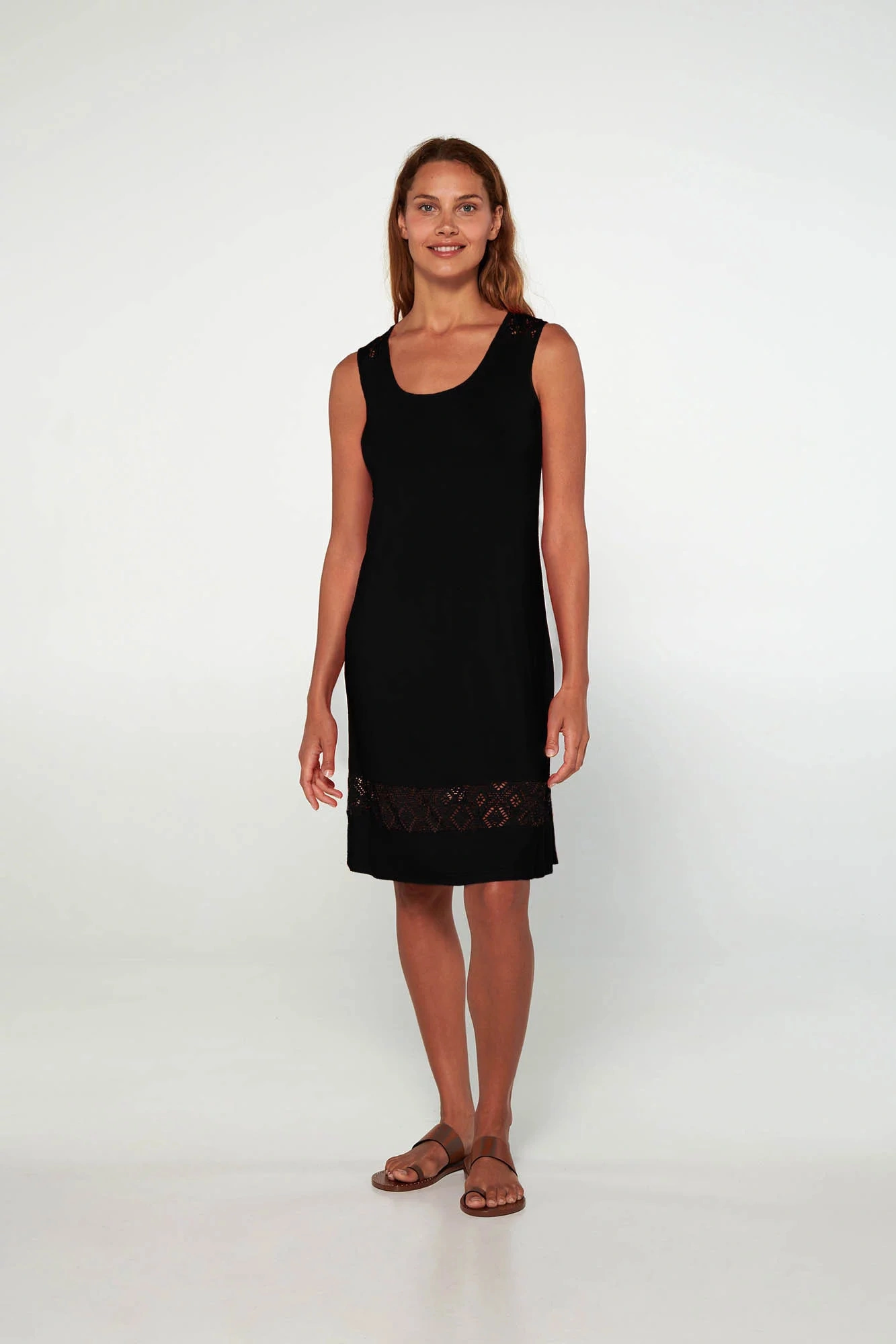 Šaty bez rukávů s kulatým výstřihem a perforovanými detaily na zádech. Jednoduchý návrh, který poskytne pohodlí a eleganci na každý den.