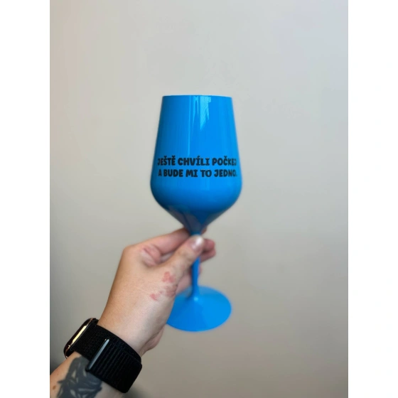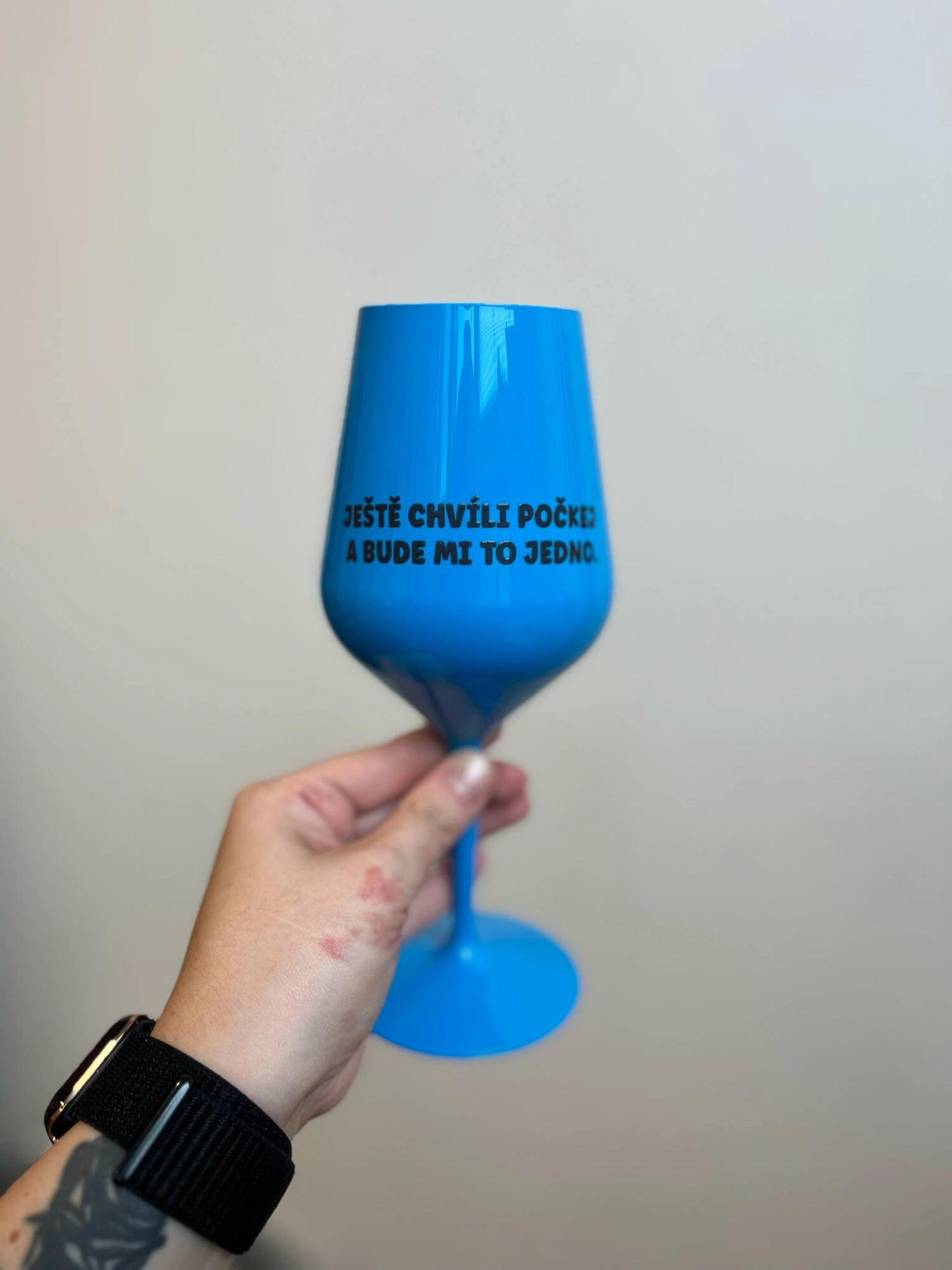 Nerozbitná modrá sklenička – JEŠTĚ CHVÍLI POČKEJ A BUDE MI TO JEDNO | 470 ml