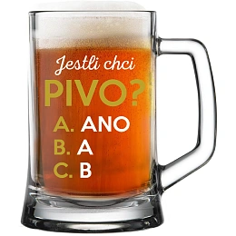 Hledáte dokonalý dárek pro milovníky piva? Naše pivní sklenice jsou přesně to, co potřebujete! Každá sklenice je vyrobena z prvotřídního skla, které zaručuje dlouhodobou odolnost a čistotu. S objemem 0,5 litru jsou tyto sklenice ideální pro vychutnávání oblíbeného zlatavého moku. Ale to nejlepší na nich je jedinečný vtipný nápis: JESTLI CHCI PIVO?, který osloví každého pivaře. Ať už jde o pohodový večer s přáteli nebo relaxační chvíle u oblíbeného seriálu, tyto sklenice dodají každé příležitosti špetku humoru. Nenechte si ujít příležitost udělat radost sobě nebo svým blízkým tímto vtipným a praktickým dárkem. Objednejte si nyní a užívejte si pivo s úsměvem! Doporučujeme ruční mytí tohoto produktu pro zachování jeho kvality a trvanlivosti. Nedoporučujeme umisťovat do myčky na nádobí.