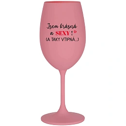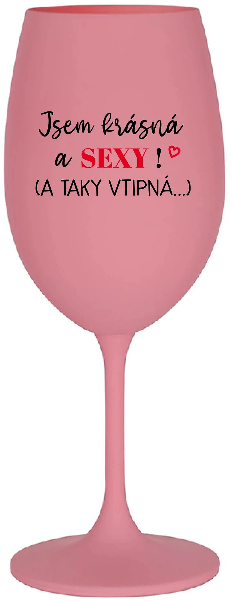 JSEM KRÁSNÁ A SEXY! (A TAKY VTIPNÁ...) - růžová sklenice na víno 350 ml