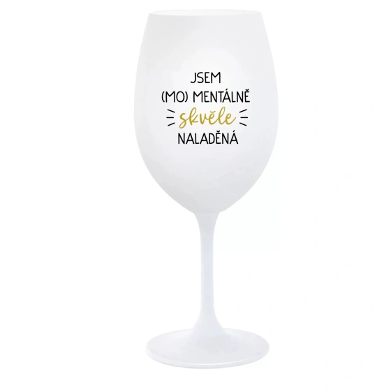 Vinná bílá sklenice s originálním motivem JSEM (MO)MENTÁLNĚ SKVĚLE NALADĚNÁ je krásným a osobitým dárkem, které ale využijete i Vy sami třeba ve chvílích, kdy si budete chtít zpříjemnit náročný den. Tyto originální vinné sklenice jsou totiž nejen pro výjimečné události, ale i pro běžné večery, které si chcete zpříjemnit sklenkou dobrého vína. Jistě proto potěší každého milovníka vína, i toho, kdo si umí svůj život vychutnat plnými doušky.
