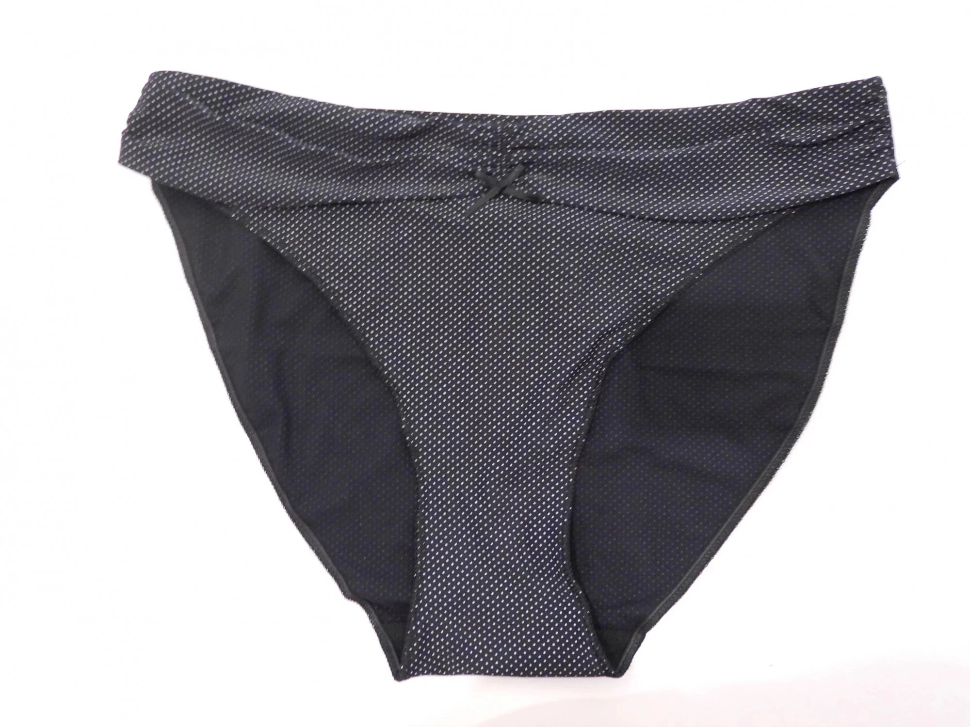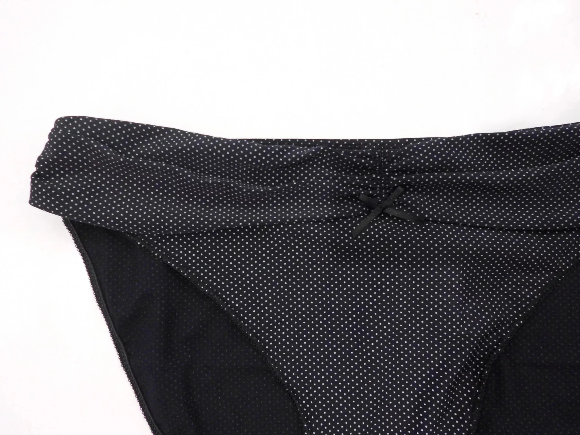 Vysoké dámské kalhotky, se širokou boční částí, dekorované vzorem s puntíky a kvěitnami. Složení: 9