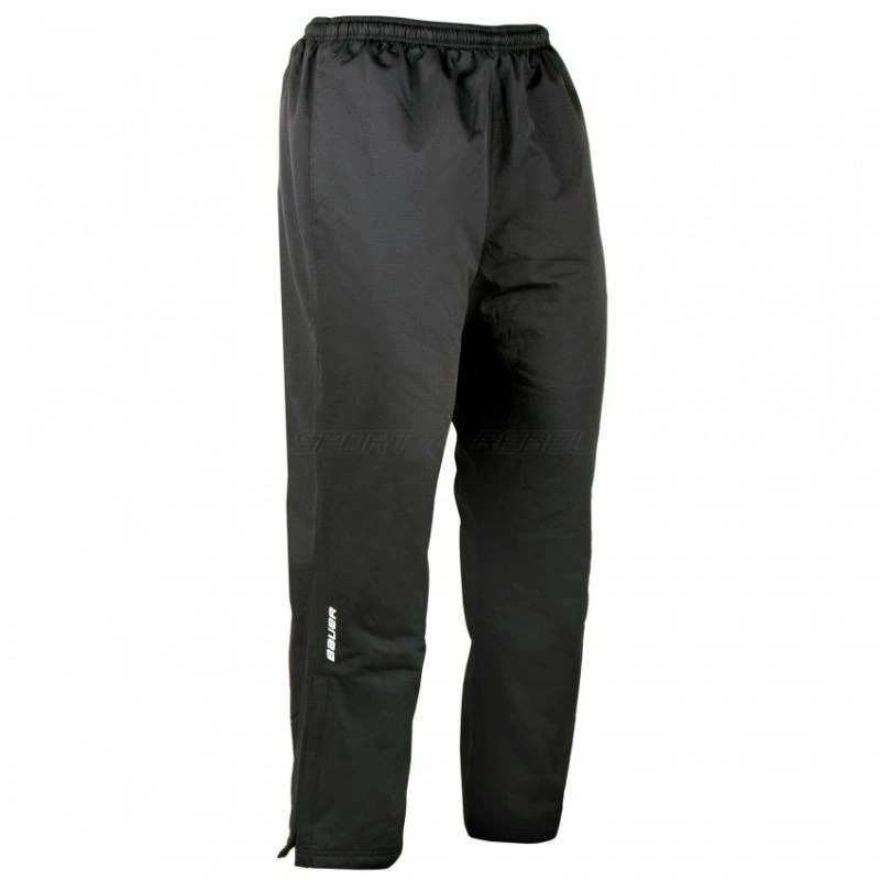Dětské zateplené kalhoty Bauer Ideální pro chladné podzimní/zimní dny Elastický pas se stahovací šňůrkou Dvě boční kapsy Logo Bauer na pravé nohavici Kvalitní zipy YKK na spodní části nohavic Kalhoty ideální pro personalizaci Materiál: 100% polyester Velikost: Mládežnická velikost