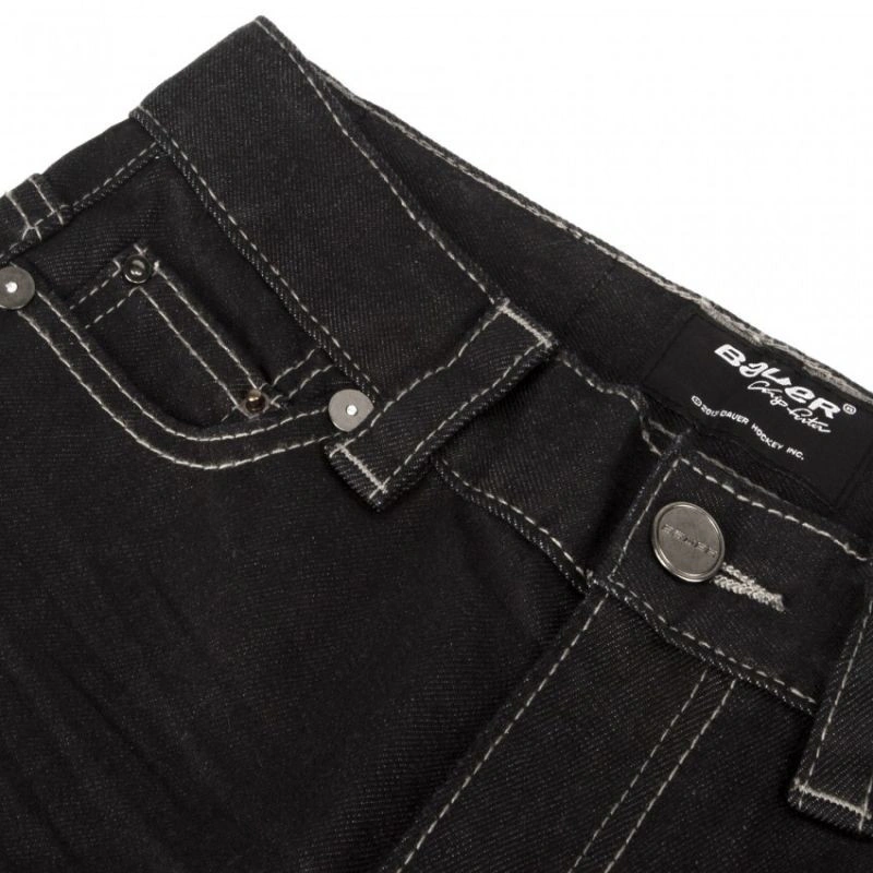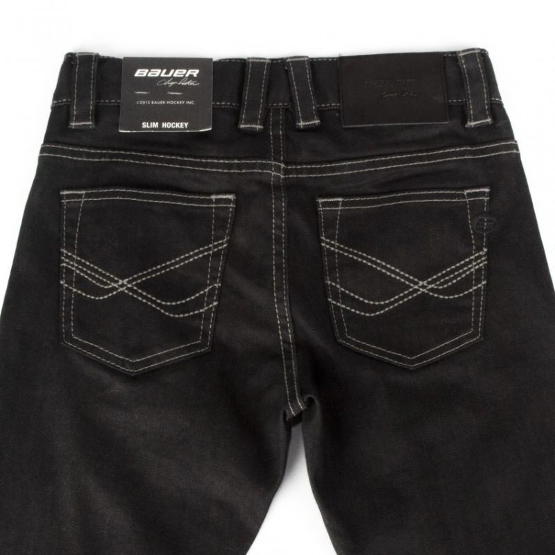 Klasické jednobarevné kalhoty 5 kapes poklopec na zip poutka v pase pro uchycení pásku zadní nášivka s logem Bauer Materiál: 97 % bavlna, 11 % polyester, 2 % elastan Velikost: Dětské
