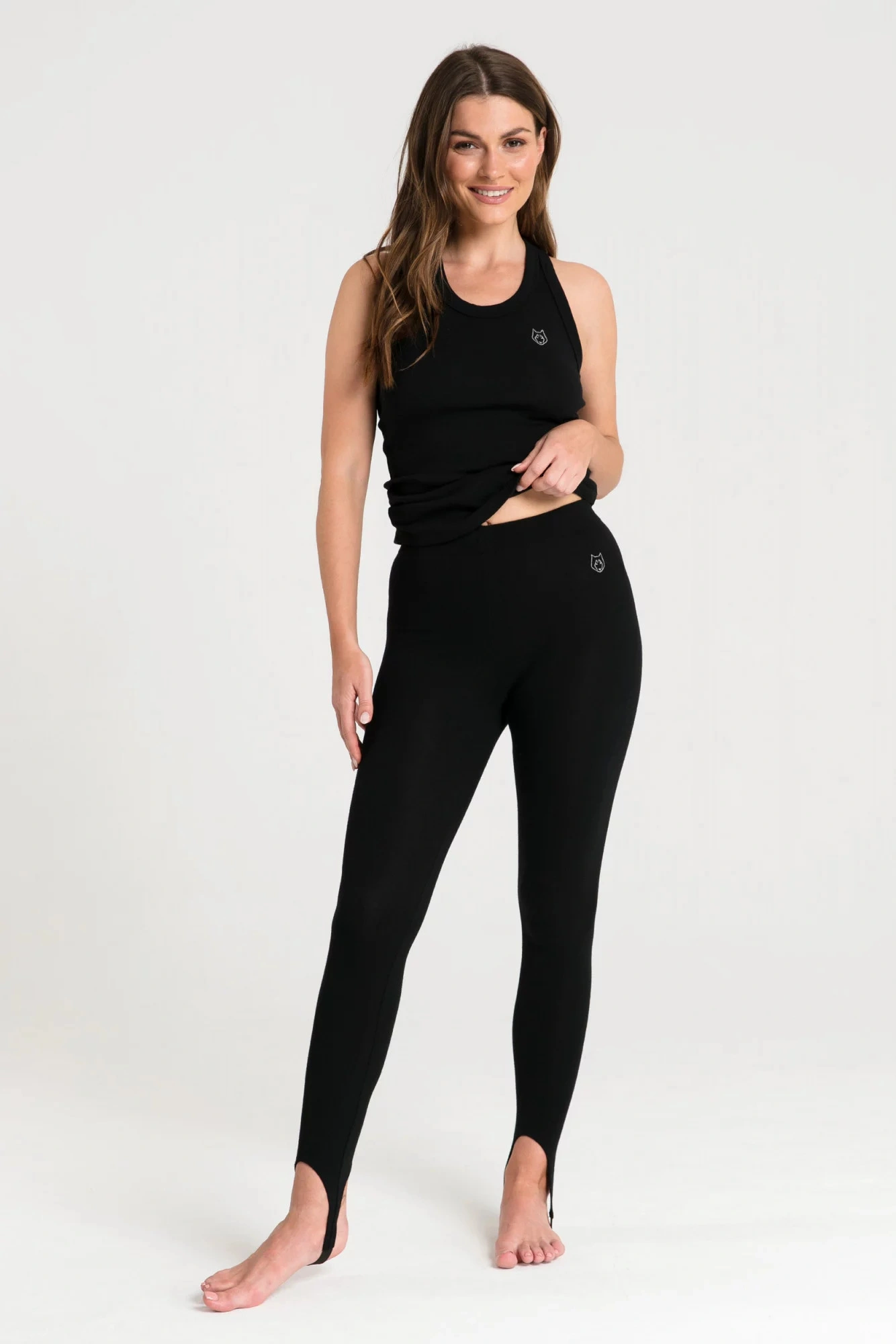 Jsou tu nějací fanoušci legín? Hodí se buď na ranní cvičení, nebo na večerní cvičení jógy a díky pohodlnému třmenu budou praktickým základem, který můžete nosit i k tunikovým šatům nebo svetru, když se potřebujete projít. Pletenina. Sportovní legíny se třmeny. Vyšívané logo vlka. Naše modelka je 172 cm vysoká a nosí velikost S.