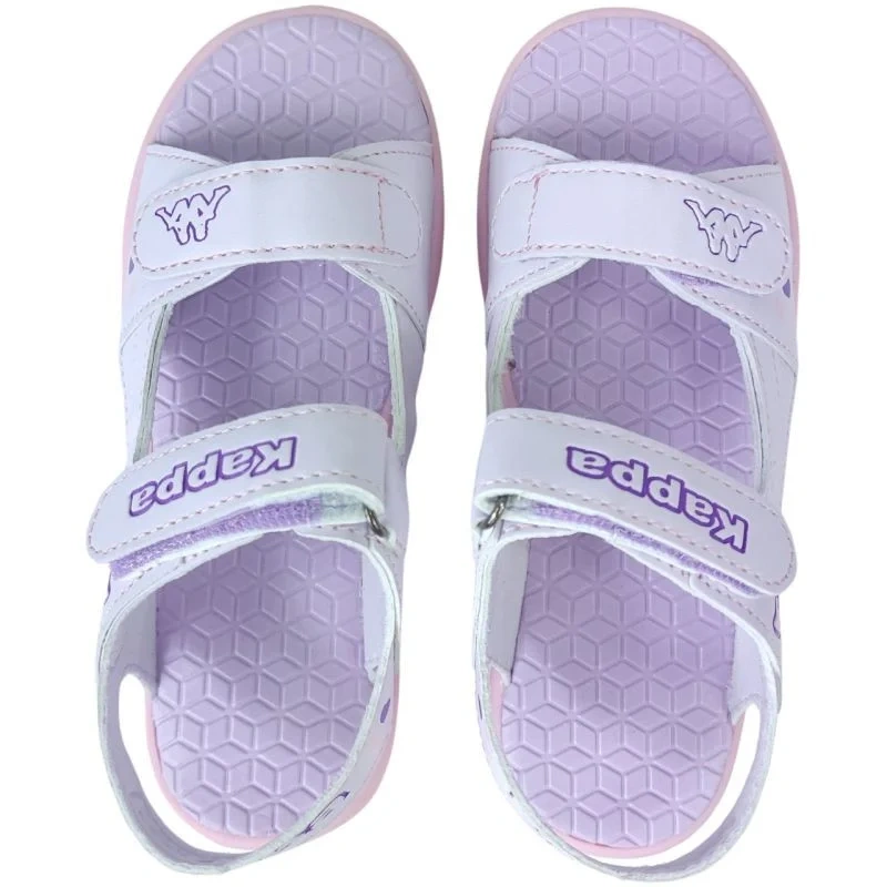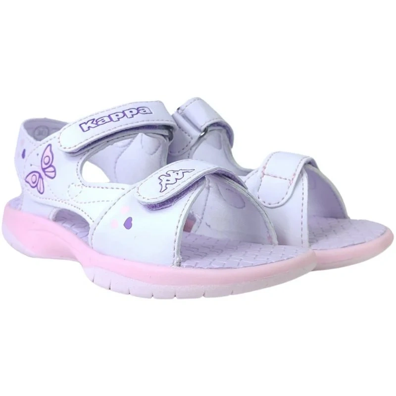 Dětské sandály Kappa pro každodenní nošení, se dvěma pásky na suchý zip pro pevné uchycení. Syntetický svršek, embosovaná stélka se srdíčkovým vzorem.