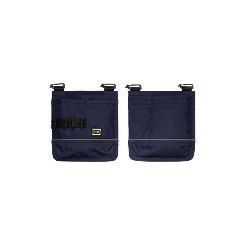 CORDURA®, plátnová vazba, 100 % polyamid, samostatné kapsy z extra pevného materiálu CORDURA®, lze připevnit k pracovním kalhotám pomocí spon (kromě T66), reflexní prvky, 20 cm x 18 cm, 1 kus = 1 pár, kód produktu Tricorp: 652012