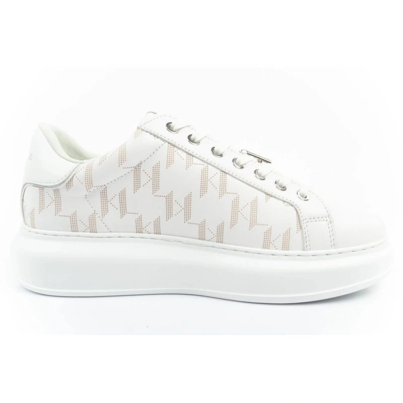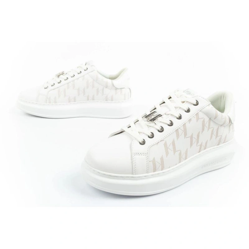 Logo KARL viditelné na přední, boční a zadní straně obuvi, zdůrazňující charakter značky obuvi.
