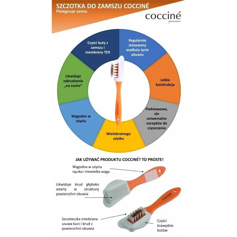 Čisticí kartáč Coccine Vlastnosti: Šetrně čistí a pečuje o semiš nebuk. Pohodlné používání.