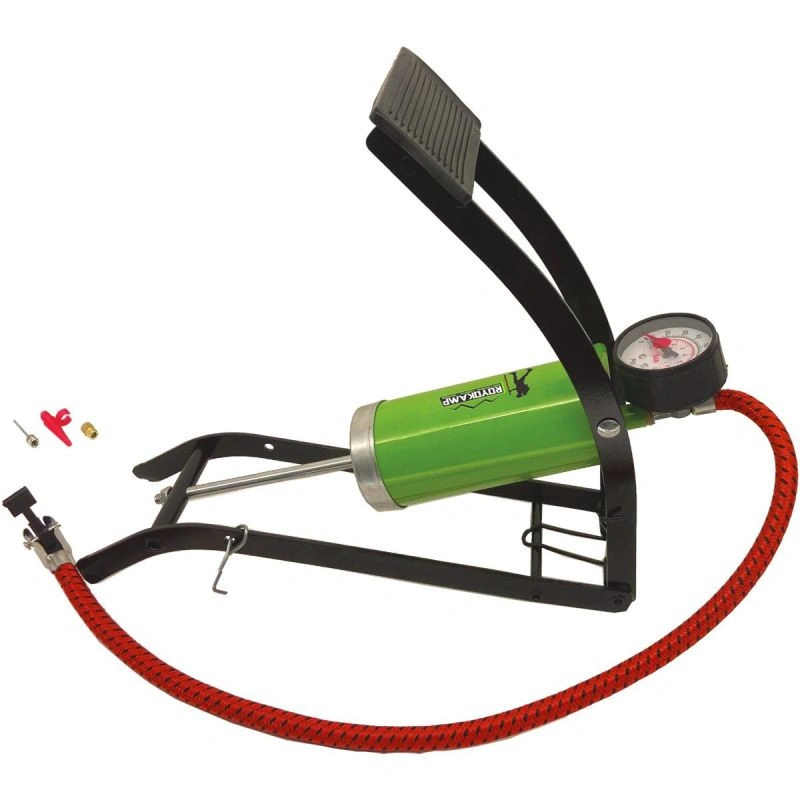 Praktická nafukovačka s manometrem na spodní straně pro snadné odečítání. Díky protiskluzovému gumovému povrchu se pohodlně používá i v dešti.