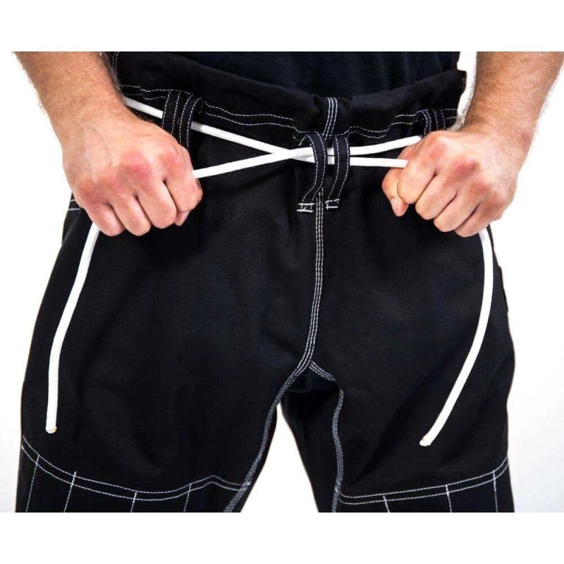 Kalhoty kimona jsou vyrobeny z lehkého materiálu a opatřeny šňůrkou, díky níž se dokonale přizpůsobí každé postavě a při cvičení nesklouzávají dolů.