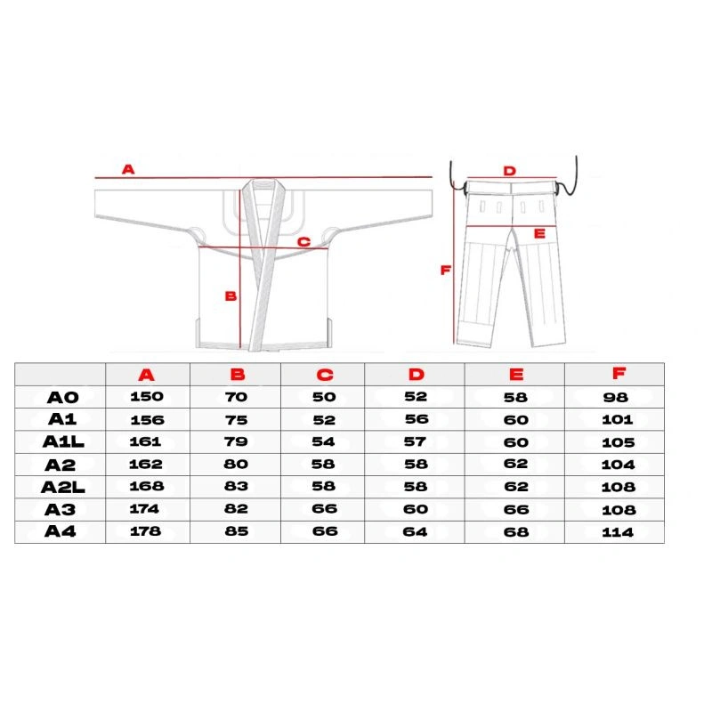 Střih kimona byl propracován tak, aby neomezoval v pohybu a zároveň poskytoval nejvyšší odolnost proti roztržení.