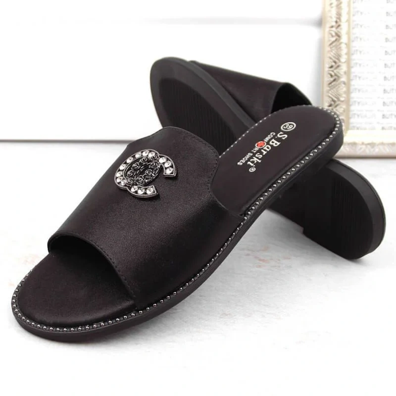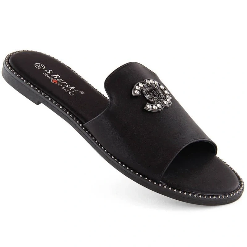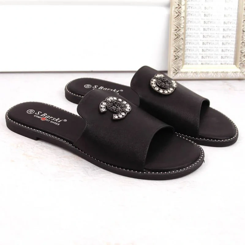 Pohodlné žabky se zirkony S.Barski W OLI258A černá
