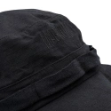 Díky patentkám lze okraj připnout směrem nahoru. Celek je doplněn vyšitým logem.