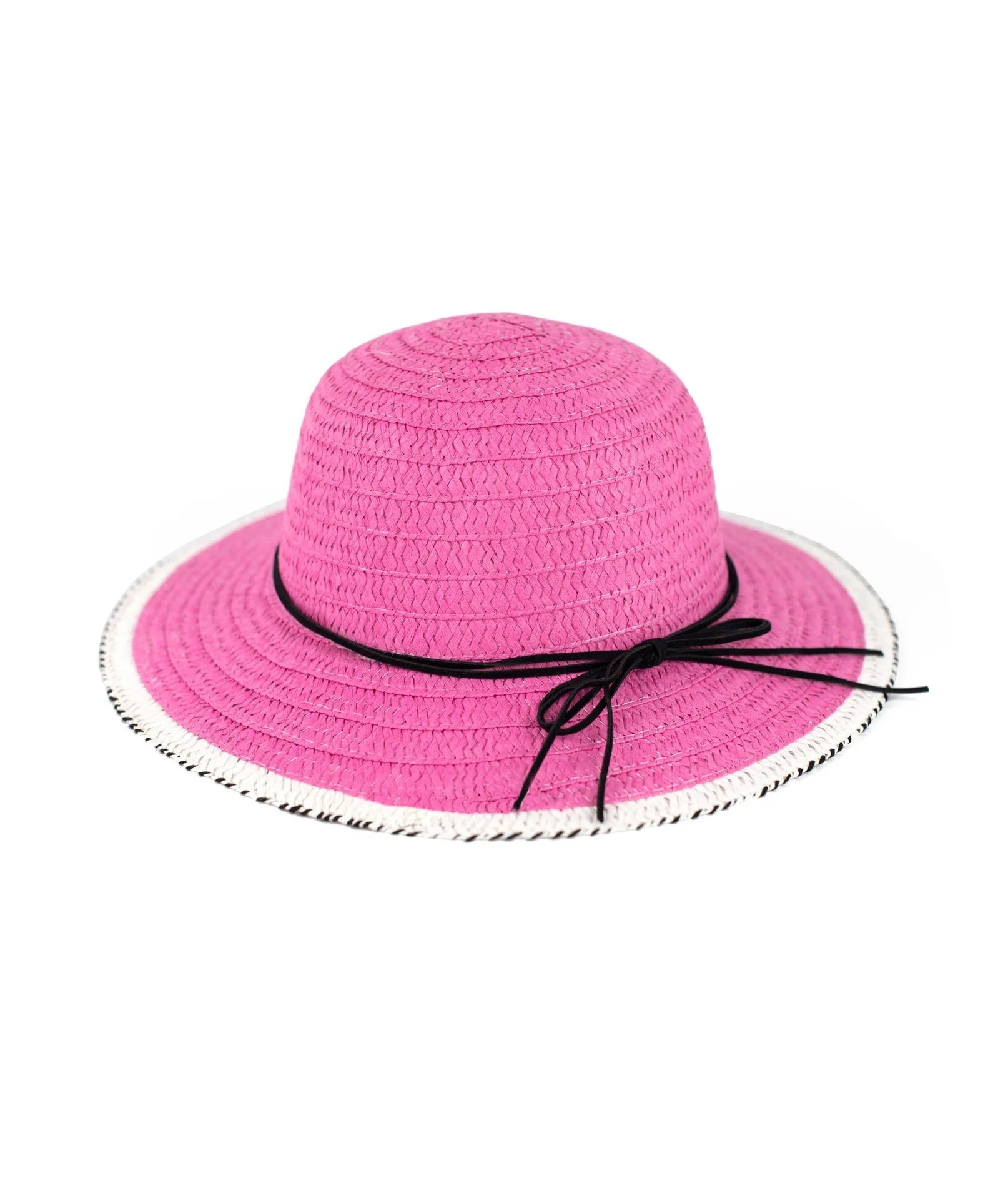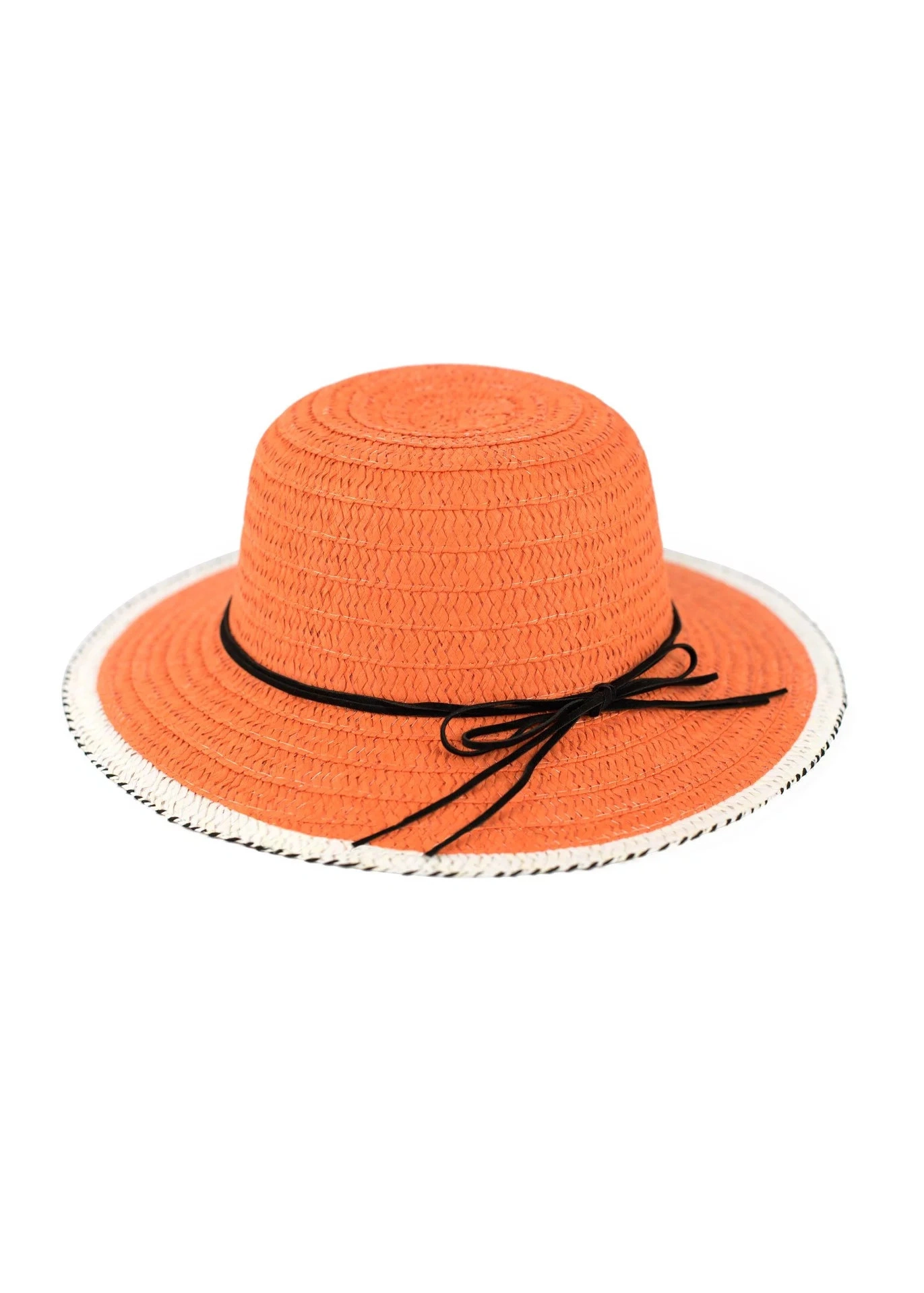 Lekki i twarzowy kapelusz letni dla dziecka- prosty, minimalistyczny fason oraz rondo ozdobione skromnym rzemykiem- charakteru dodaje mu wyrazisty kolor- rewelacyjnie sprawdzi się na plażę lub na spacer po mieście