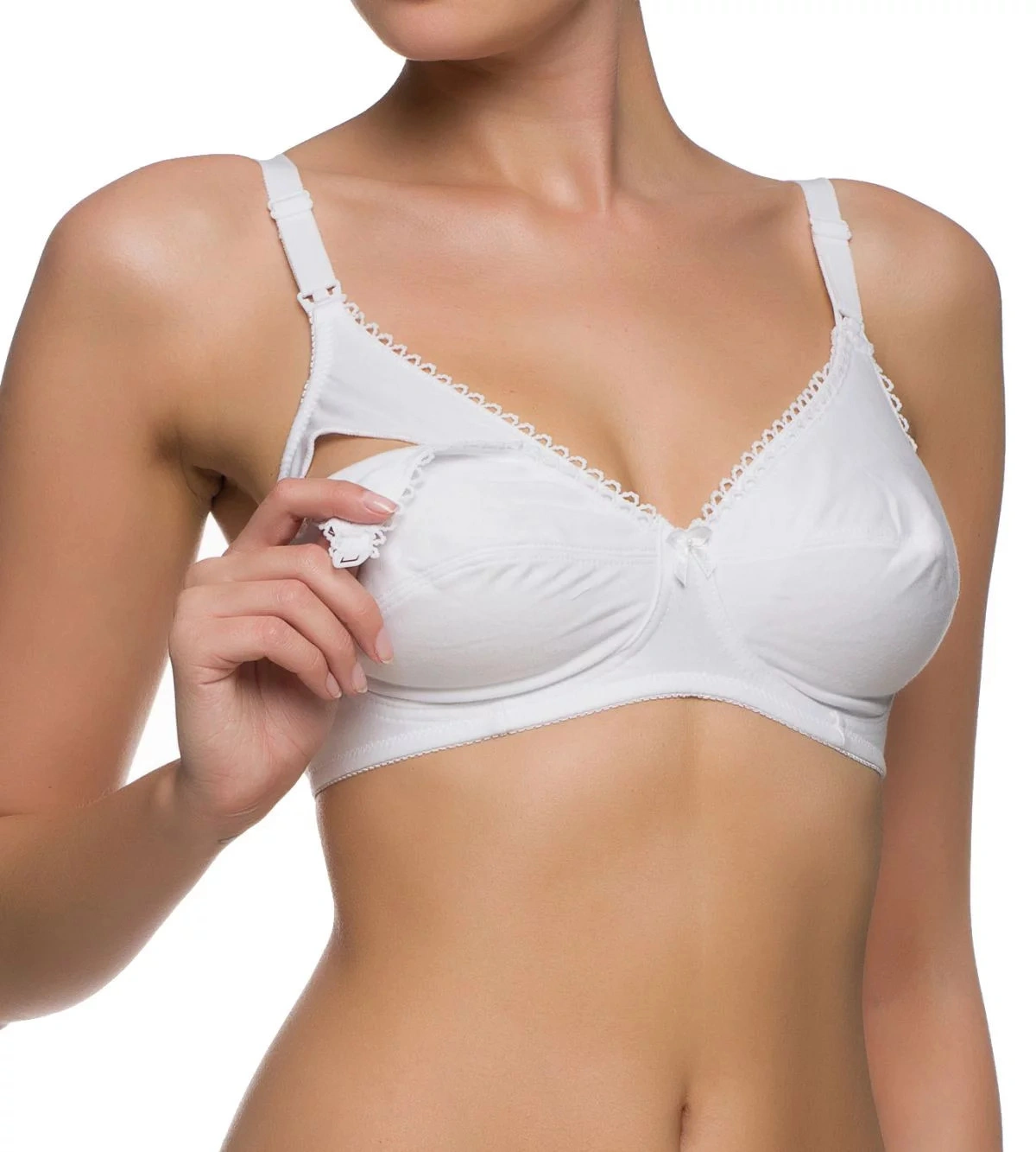 Mateřská kojící podprsenka s odepínacím košíčkem v bílé barvě. Je vyrobena z kvalitní jemné bavlny.