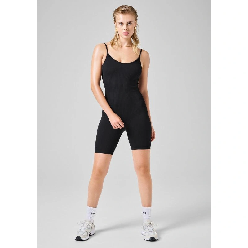 Toto přiléhavé body z bezešvého žebrového úpletu poskytne dokonalé pohodlí a komfort při všech typech cvičení. Je vyrobeno ze strukturovaného, ale pružného recyklovaného polyamidu, má přiléhavý střih s výstřihem do V, tenká ramínka a délku do poloviny stehen. Stvořeno do posilovny, studia i mimo něj.