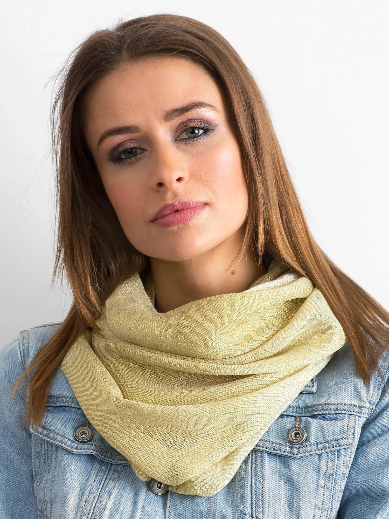 Zlatobéžový snood s třpytivou nití.