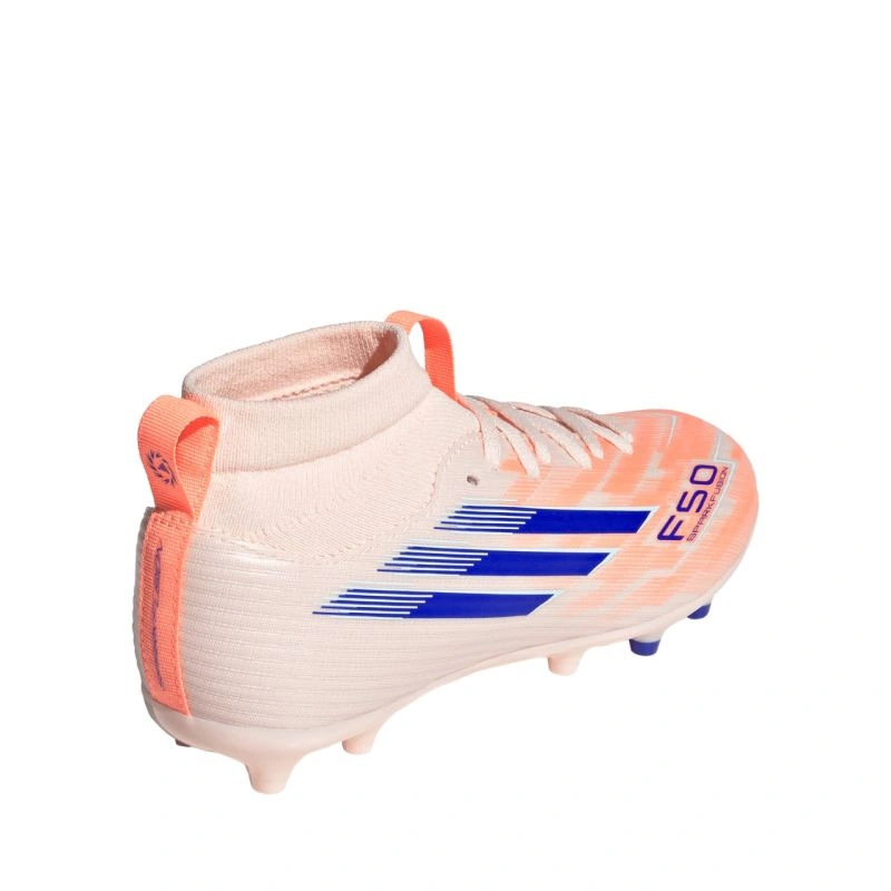 Kopačky adidas F50 Sparkfusion League FG/AG JR3971 Polobotky adidas F50 z kolekce Coral Blaze Pack jsou určeny pro hráče, kteří preferují hru na přírodním i umělém trávníku. Svršek Fiberskin fixuje nohu na místě díky prodlouženému límci a na přední části chodidla se prezentuje vzorem Sprintgrid. Šněrovací model. Textilní podšívka. Podešev Sprintplate Fusion je navržena tak, aby podporovala biomechaniku na různých površích.