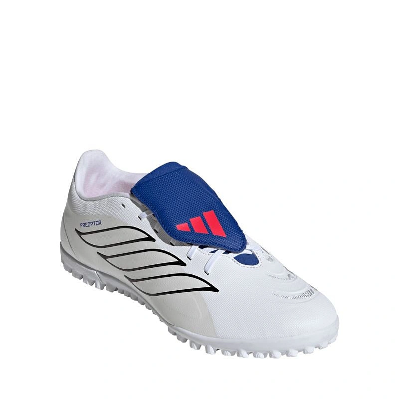 Kopačky adidas Predator Club FT TF JP6525 Pánské kopačky adidas Predator z kolekce Player Pack s podpisem Jude Bellinghama "JB" na patě, určené pro použití na umělém trávníku. Syntetický svršek, technologie NanoStrike pro novou synergii mezi přizpůsobením a přilnavostí, omotaný jazyk, textilní vnitřek, turfová podrážka pro přilnavost, amatérská úroveň.