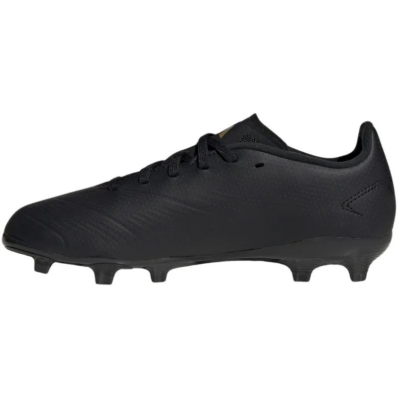 Dětské kopačky adidas Predator League FG IF6353 Poloamatérské kopačky adidas Predator jsou určeny pro chlapce, kteří dávají přednost hře na tvrdém přírodním trávníku. Predator ve své nejnovější iteraci pochází z kolekce Darkspark Pack. Syntetický svršek s technologií Hybridfeel byl pokryt vypouklou strukturou a je vybaven přilnavými překryvy Strikescale na vnitřní straně chodidla pro lepší kontrolu. Jemně asymetrické šněrování. podrážka s lakovanými hroty.