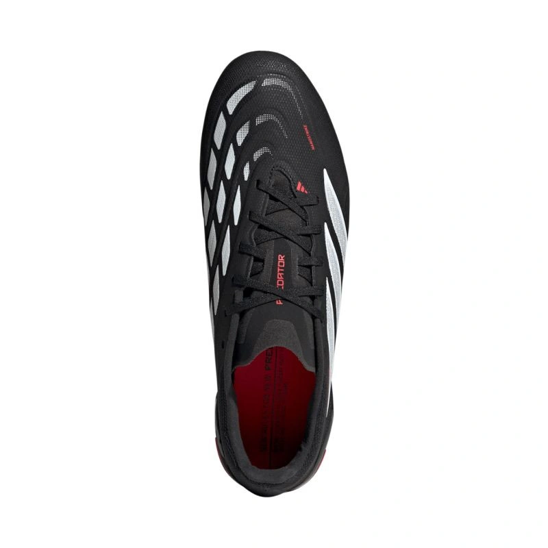 Kopačky adidas Predator League FG JR7881 Poloamatérské kopačky adidas Predator jsou určeny pro hráče, kteří dávají přednost hře na tvrdém, přírodním trávníku. Pocházejí z kolekce Black Pack. Syntetický svršek dostal technologii Nanostrike a síťovanou strukturu. Šněrovací model s pružným jazykem. Podešev s litými hroty.