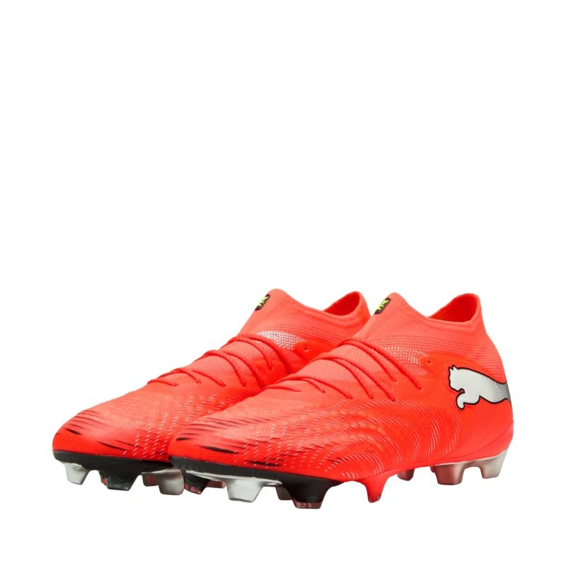 Buty piłkarskie Puma Future 9 Ultimate FG 108883 01 Profesjonalne, męskie korki Puma są doskonałym rozwiązaniem na ligowe spotkania rozgrywane na naturalnej murawie. Kolekcja Unleashed Pack. Strefy z symbolem Puma. Dane techniczne:· Miękka podszewka w połączeniu z wielokształtną dzianiną dostosowuje się do stopy jak druga skóra, tworząc dopasowany, naturalny krój, który utrzymuje stopę w miejscu, nie ograniczając ruchów· Wbudowane w warstwę bazową poduszki Fuzionpods 3D amortyzują piłkę, zapewniając swobodę ruchów i naturalność.· Wzmocnienie PWRTAPE w śródstopiu przytrzymuje stopę, zapewniając stabilność bez ograniczania ruchów· Odnowiona warstwa siateczki ze strefami przyczepności 3D i wykończeniem GripControl Pro zapewniająca większą kontrolę nad piłką podczas podania, dryblingu i wykończenia· Lekka wyjmowana wkładka z technologią NanoGrip · Dzięki okrągłemu układowi korków i konstrukcji z materiału o podwójnej gęstości podeszwa zewnętrzna FLEX