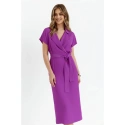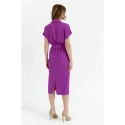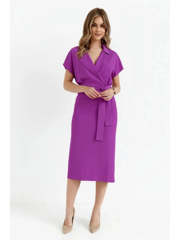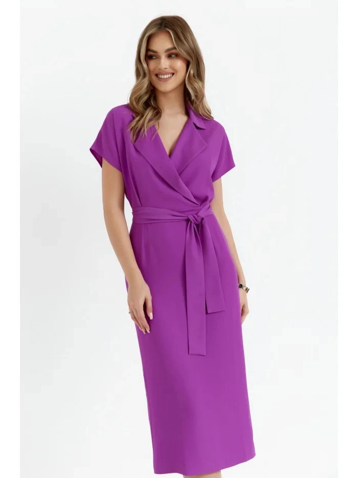 PODROBNOSTI O PRODUKTU: košilové šaty z tkané látky s límečkem zavinovací vršek s krátkými netopýřími rukávy tužková sukně střední délky částečně elastický pas délka pod kolena rozparky na zádech nepodšitý pásek na zavázání naše modelka je 176 cm vysoká a nosí velikost S navrženo a vyrobeno v Polsku