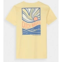 potisk na zadní straně s motivem slunce a vln s nápisem "Catch Waves" (Chyťte vlny)