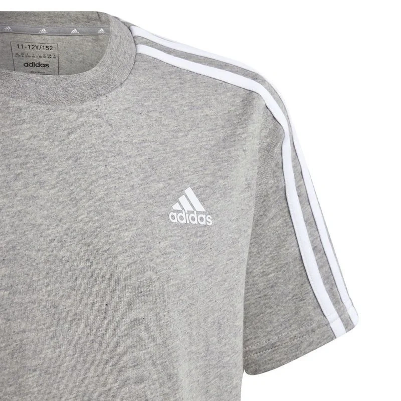 Dětské bavlněné tričko adidas Essentials 3-Stripes šedé IB1669
