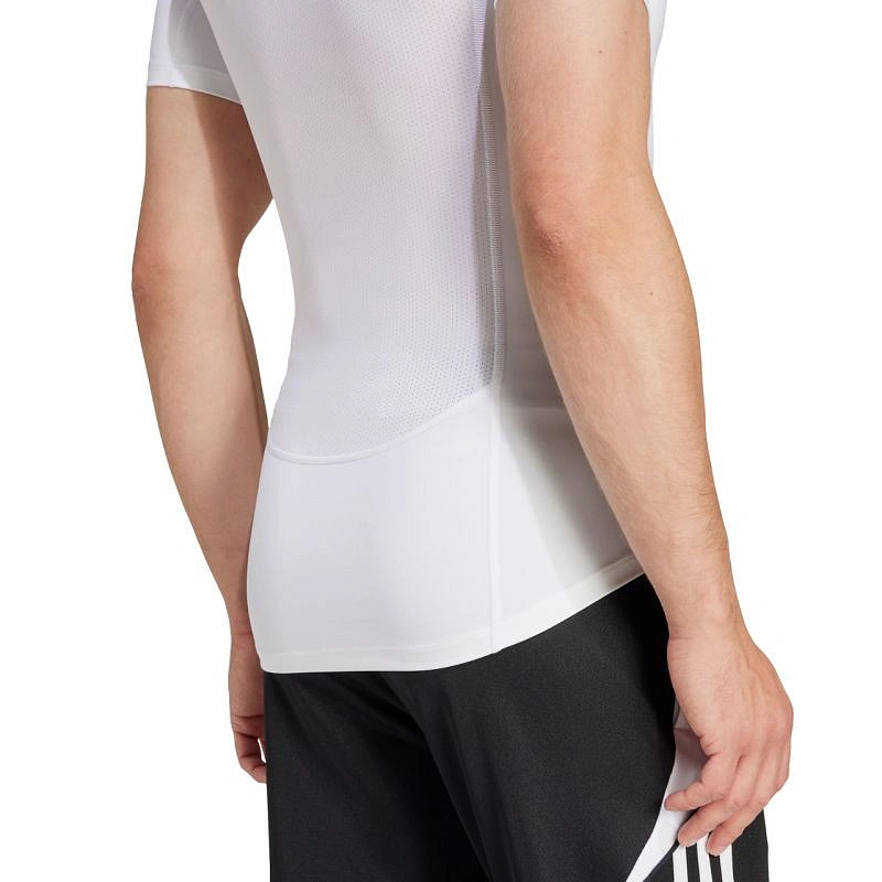 Pánské tričko adidas Techfit s krátkým rukávem bílé JP4675 Pánské tričko adidas je ideální jako první vrstva oblečení pod fotbalový dres při tréninku. Kompresní střih Techfit zajišťuje stabilitu a podporuje funkci svalů. Technologie Aeroready odvádí přebytečnou vlhkost. Antimikrobiální síťovaný zadní panel. Malé logo na přední straně. Materiál: 88 % recyklovaný polyester, 12 % elastan.