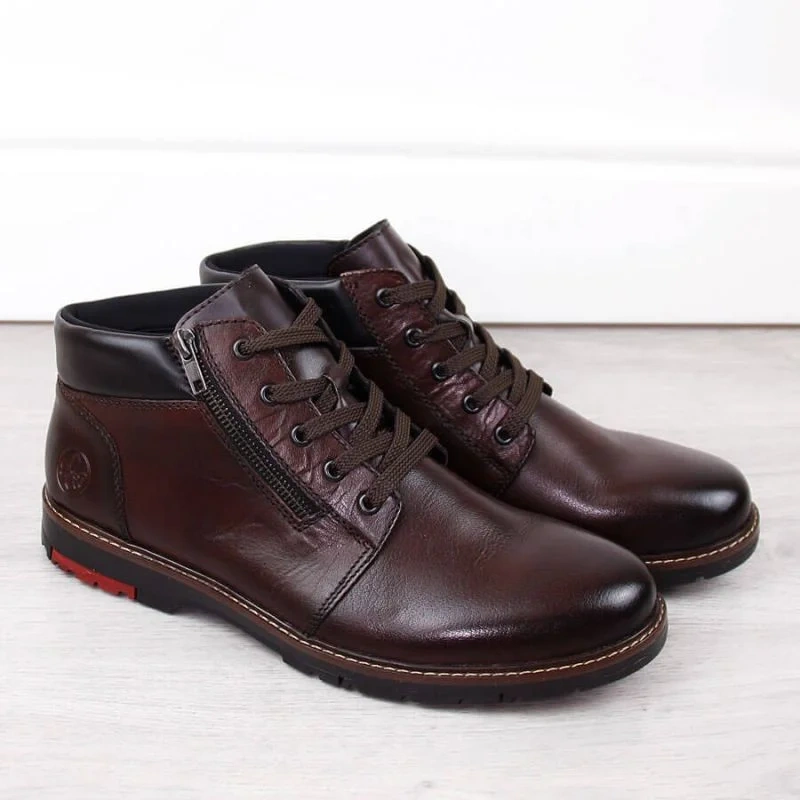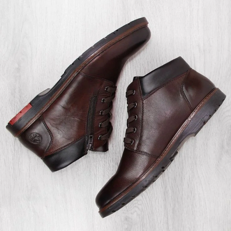 Rieker M RKR625 hnědá vlněná zateplená kožená pohodlná obuv