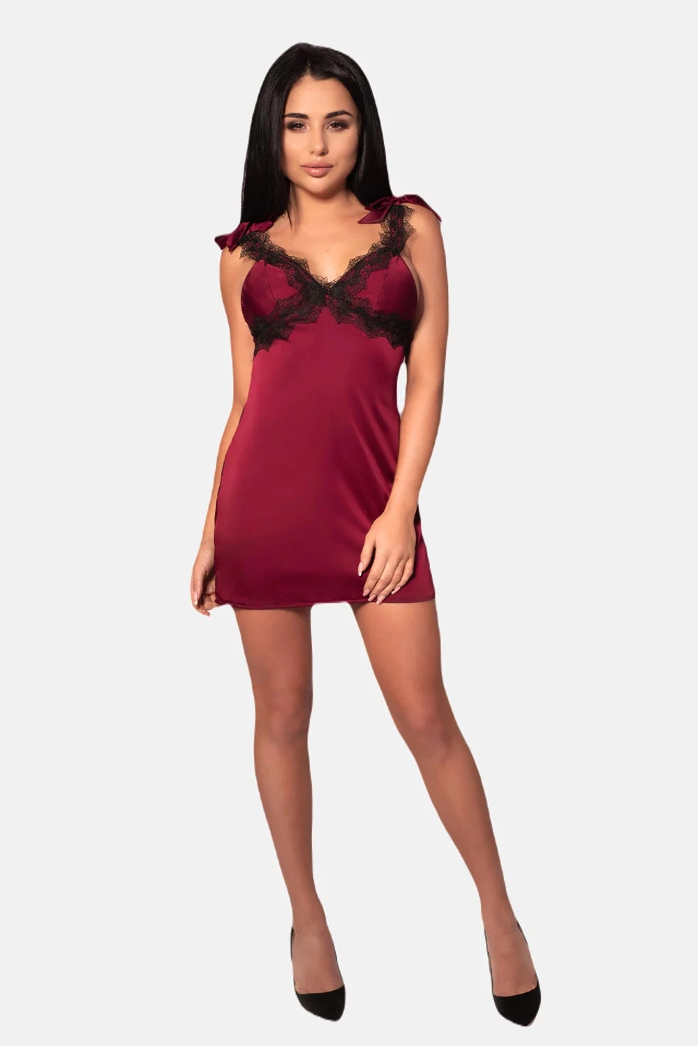 - saténová noční košile ve výrazné vínové a třešňové barvě