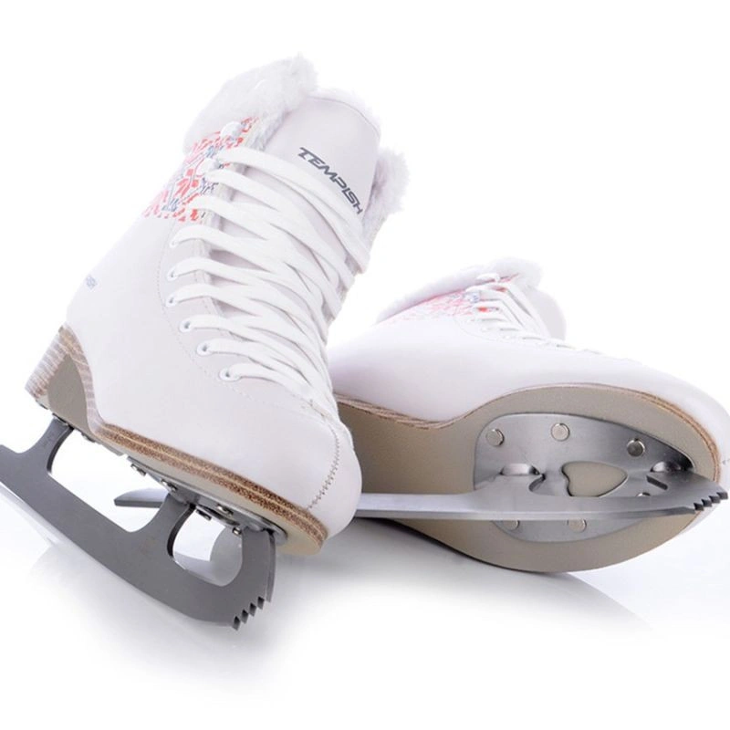 Łyżwy figurowe TEMPISH Freya II Klasyczna elegancja z nowoczesnym designem Łyżwy figurowe TEMPISH Freya II to damski model, idealnie sprawdzi się podczas rekreacyjnej jazdy na lodzie, szczególnie dla osób ceniących styl i komfort. Głowne cechy: Unikalny design: Wykonane z materiału PVC Cool Resist z połyskującym wykończeniem PEARL EFFECT, uzupełniona subtelnym nadrukiem inspirowanym zimową aurą. Wysoka jakość materiału: Polerowane ostrze ze stali powlekanej zapewnia trwałość oraz płynny, pewny ślizg. Komfort i izolacja: Anatomiczna piankowa wyściółka w okolicy języka gwarantuje dopasowanie i wsparcie, a miękka imitacja futra wewnątrz łyżwy zapewnia ciepło i wygodę nawet w niskich temperaturach. Łyżwy figurowe TEMPISH Freya II to stylowe, komfortowe i niezawodne łyżwy, które sprawią, że każda jazda na lodzie stanie się wyjątkową przyjemnością. Specyfikacja techniczna – Łyżwy figurowe Zalecane zastosowanie Rekreacyjne łyżwiarstwo figurowe Materiał