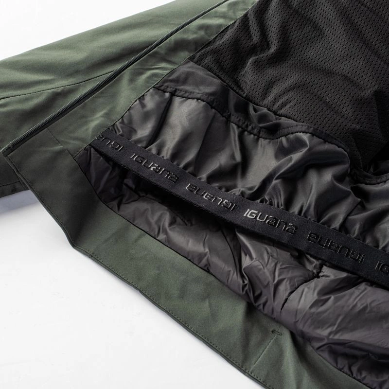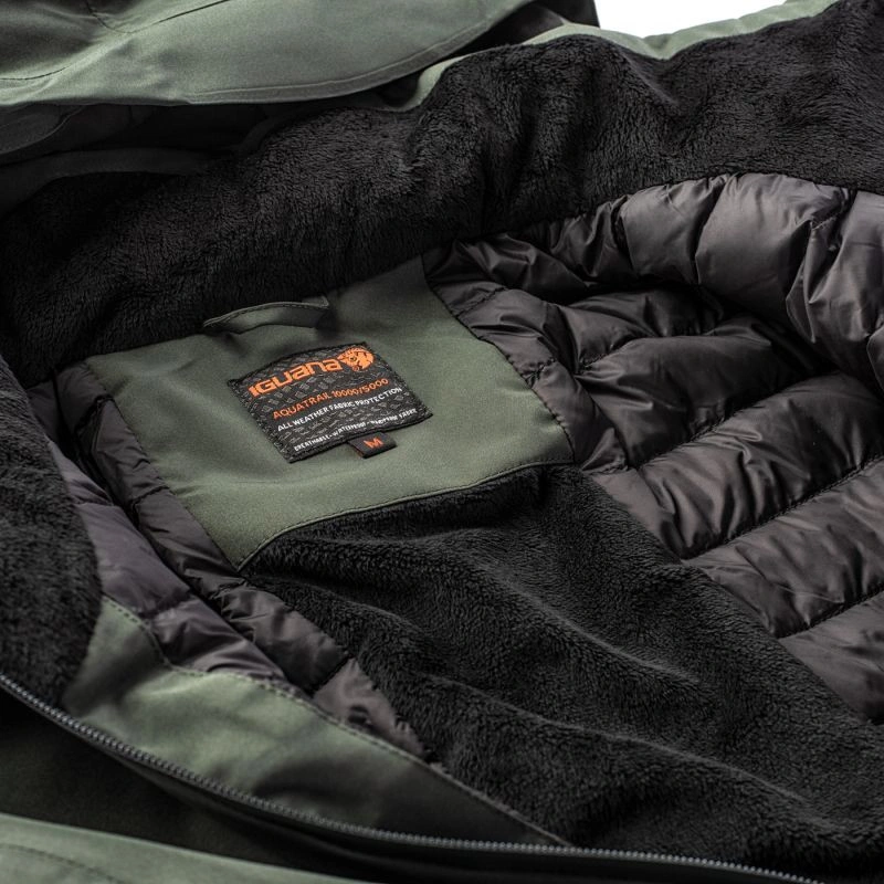 Męska kurtka zimowa LOTHO marki Iguana. Zapewnia ochronę przed śniegiem i deszczem dzięki zastosowaniu membrany o wodoodporności 10 000 mm H²O. Kurtka została wyposażona w kieszenie boczne oraz kieszonkę na skipass. Suwak z wysoką stójką został zakończony patką chroniącą podbródek. Dodatkowo kurtkę LOTHO wyposażono w kaptur z regulacją boczną. Fartuch przeciwśnieżny doskonale sprawujący się podczas sporych opadów, jak i ewentualnych wywróceń na śnieg. Powłoka DWR to rodzaj specjalnej impregnacji tkaniny zwiększającej napięcie powierzchniowe wody, jej głównym zadaniem jest zapewnienie wysokiego stopnia wodoodporności. Kurtka wykonana z wytrzymałego poliestru zapewni długi okres użytkowania. Wypełnienie z kaczego puchu i piór świetnie sprawuje się utrzymując ciepło użytkownika. Całość została zabezpieczona klejonymi szwami, aby zapobiec pruciu się i dodatkowo uszczelniając kurtkę.