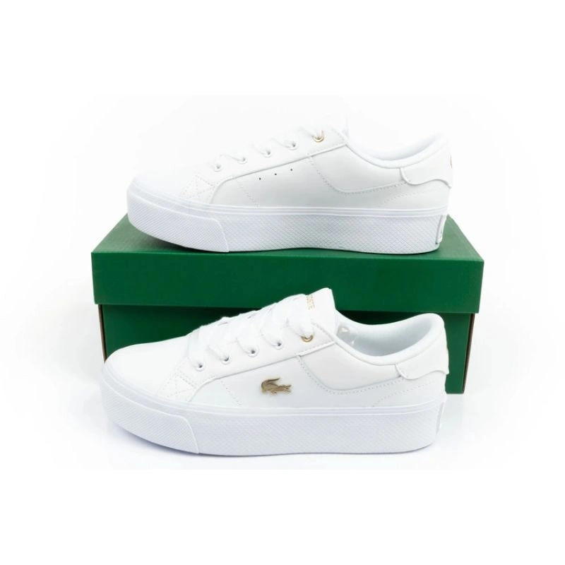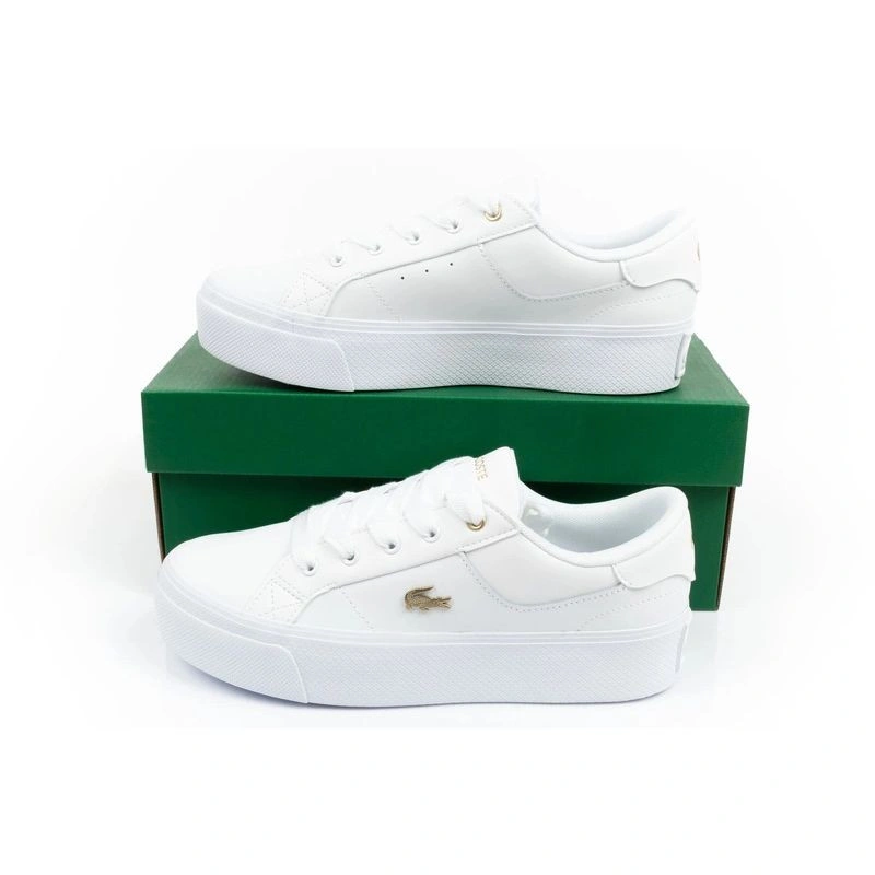 Vlastnosti: Dámská sportovní obuv Lacoste. Svršek z prvotřídní přírodní kůže. Loga ve zlaté barvě,