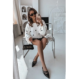 Špičatý nos opticky zeštíhluje nohy a plochý podpatek zaručuje pohodlí po celý den.