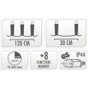 Volitelný režim vám umožní přizpůsobit osvětlení atmosféře a náladě místnosti nebo venkovního prostoru. Můžete si vybrat měkké, statické světlo nebo dynamické blikání a efekty měnící barvy - v závislosti na příležitosti a vašich preferencích. Díky tomu je osvětlení všestranné, ideální jak pro intimní setkání, tak pro intenzivní slavnostní výzdobu. Dálkové ovládání umožňuje snadné přepínání mezi režimy a poskytuje vám plnou kontrolu nad světelným efektem.