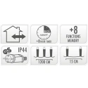 Světelný závěs má na výběr z 8 různých režimů osvětlení, takže si můžete vytvořit jedinečnou a nenapodobitelnou dekoraci. Sekvence lze přepínat pomocí speciálního tlačítka na napájecím zdroji.