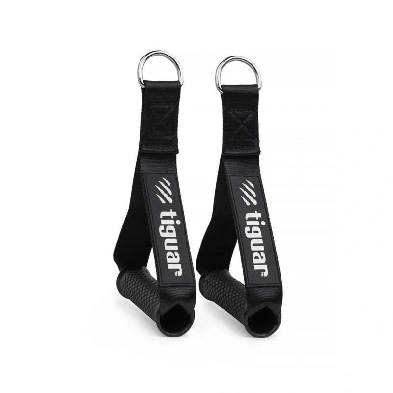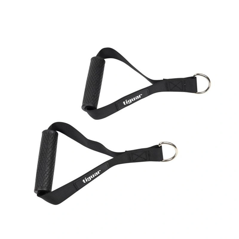 Materiałowe uchwyty do wyciągu, wykonane z lekkiego, wytrzymałego i odpornego na rozciąganie materiału. Stanowią atrakcyjną alternatywę dla tradycyjnych uchwytów metalowych. Materiałowe uchwyty do wyciągu to idealny wybór dla osób szukających wygodnego i wszechstronnego rozwiązania do treningu wielu grup mięśniowych. Są wygodne, trwałe i łatwe w użyciu, a także pozwalają na skuteczne wykonywanie różnorodnych ćwiczeń w pełnym zakresie ruchu. Świetnie sprawdzają się w treningu mięśni pleców, ramion czy klatki piersiowej, zwłaszcza w ćwiczeniach izolowanych. Stanowią doskonałą alternatywę dla swoich metalowych odpowiedników. Materiałowe uchwyty do wyciągu tiguar wykonane są z plecionej taśmy z Terylene, która odznacza się wyjątkową wytrzymałością na rozciąganie i odpornością na przetarcia. Część chwytna wykonana jest z gumowego uchwytu TPR, który zapewnia pewny, antypoślizgowy chwyt i wysoki komfort użytkowania podczas intensywnych treningów. Materia