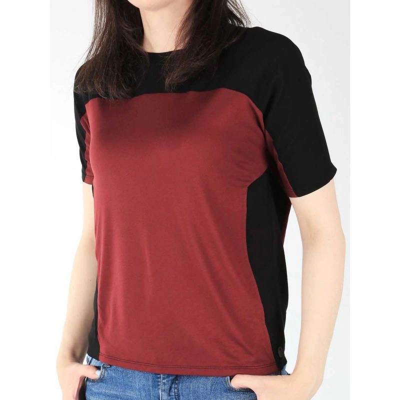 Dámské tričko v černo-vínové barvě. Jednoduchý, klasický střih. Krátký rukáv.