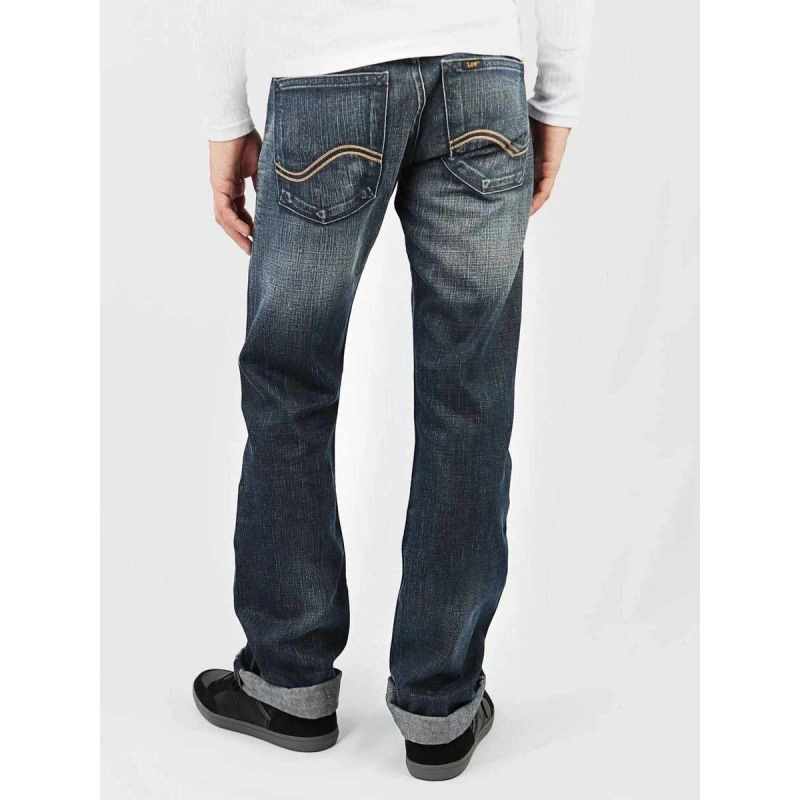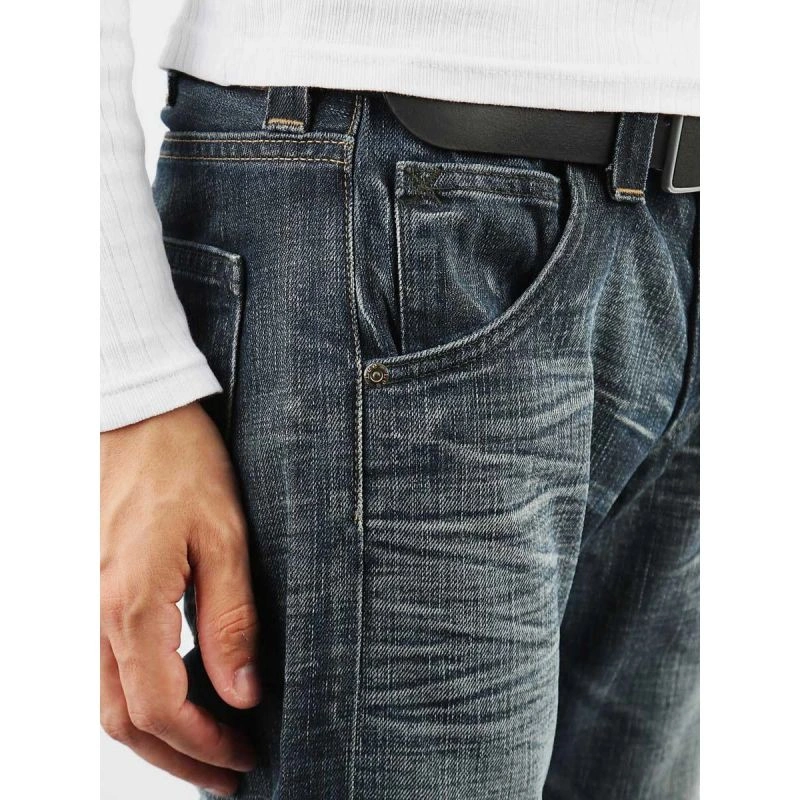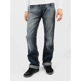 Pánské džínové kalhoty s nízkým sedem a rozšířenými nohavicemi, zapínání na knoflíky, kožená nášivka s logem na zadním pásu.