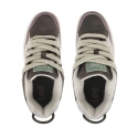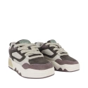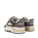 Svršek kombinuje různé struktury, včetně nubukové kůže, syntetické kůže a látkových vložek.
