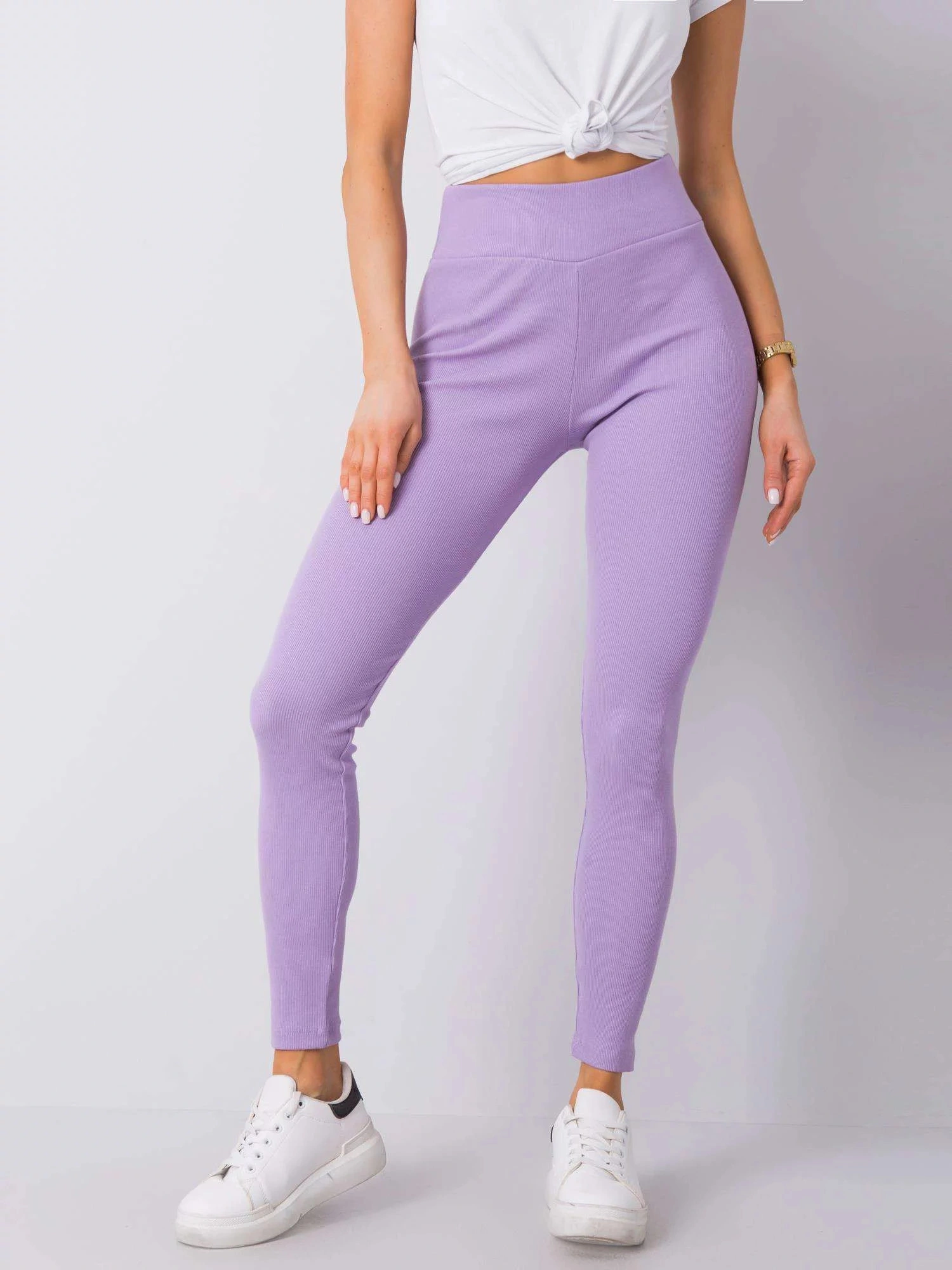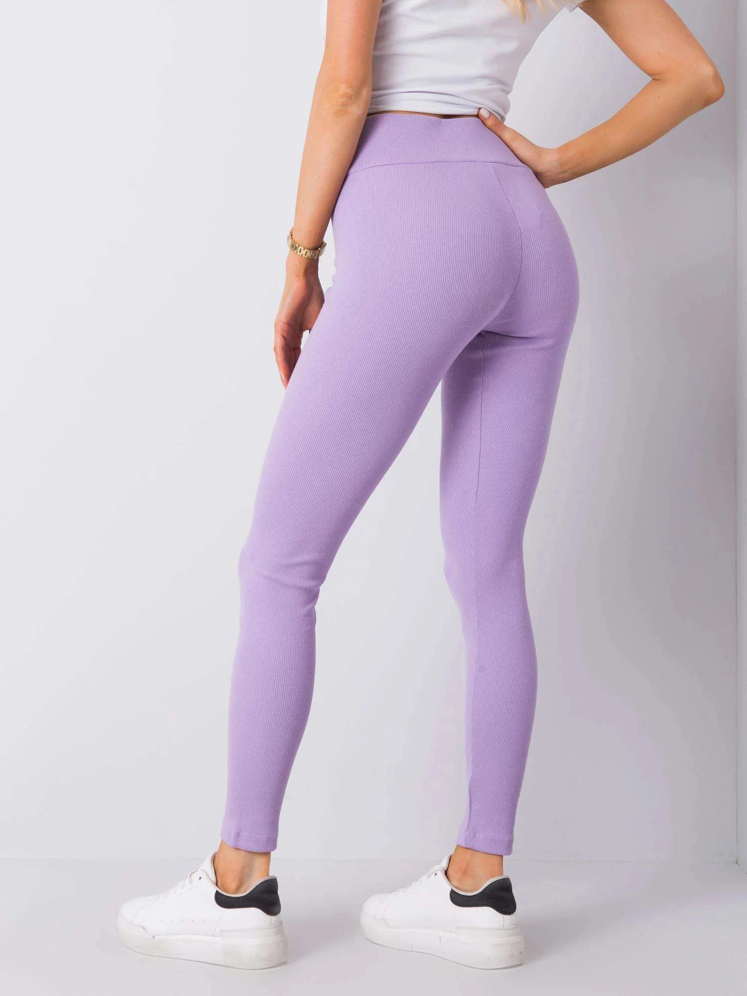 Fialové pruhované základní legíny .