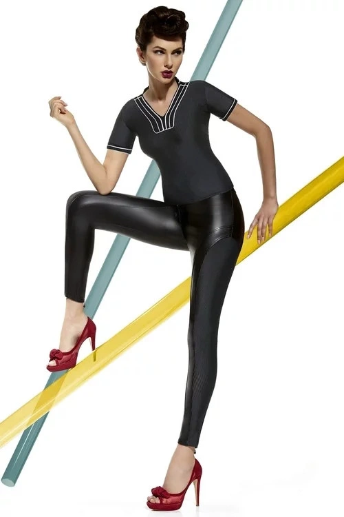 Moderní legíny Noemi Bas Bleu s latexovým vzhledem. Dámské luxusní dlouhé legíny jsou vyrobené z p