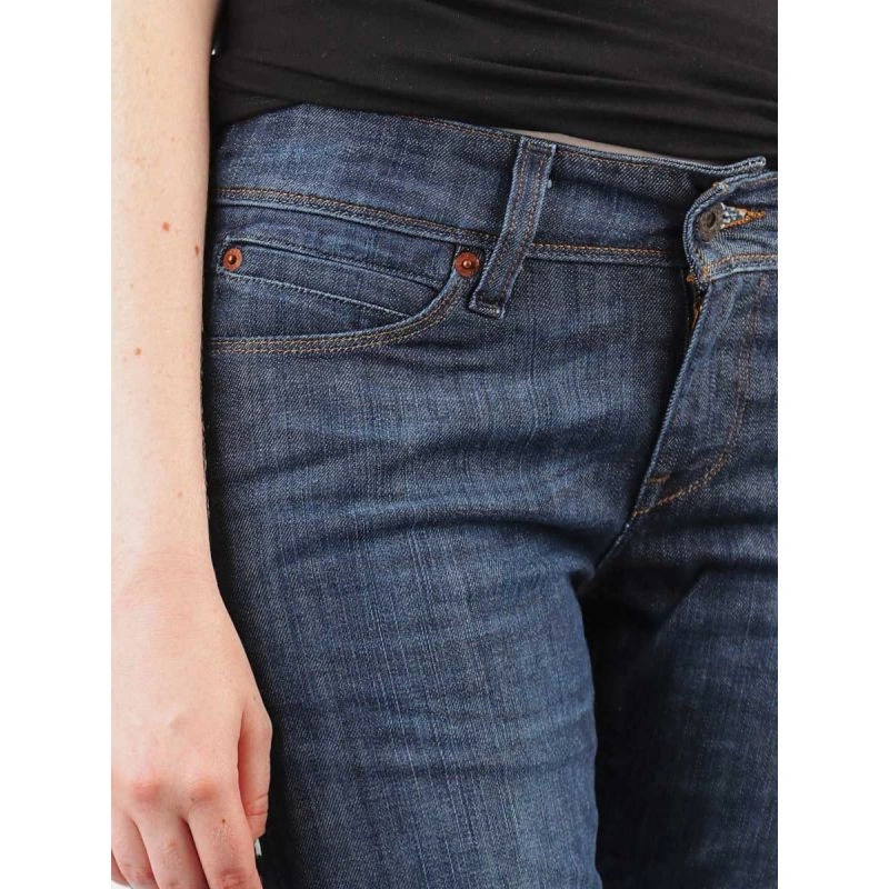 Dámské džínové kalhoty s nízkým sedem, širokými nohavicemi, zapínáním na zip a knoflík a výraznou nášivkou Levi's na zadním pásu.