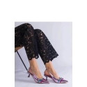 Fialové kachní podpatky s otevřenou patou Perfecta Dolores jsou ideálním doplňkem k letním outfitům. Vyrobené z vysoce kvalitní ekologické kůže zajistí, že vaše nohy budou pohodlné po celý den. Spona zajistí stabilní přizpůsobení a béžová podrážka přidává eleganci a lehkost. Tyto roztomilé podpatky určitě přitáhnou pozornost a dodají charakter vašim outfitům!